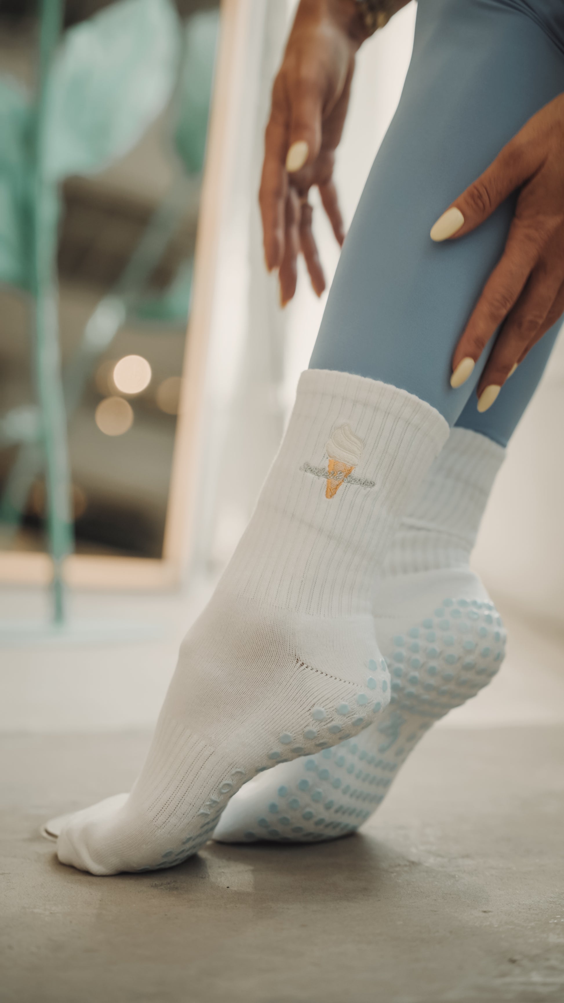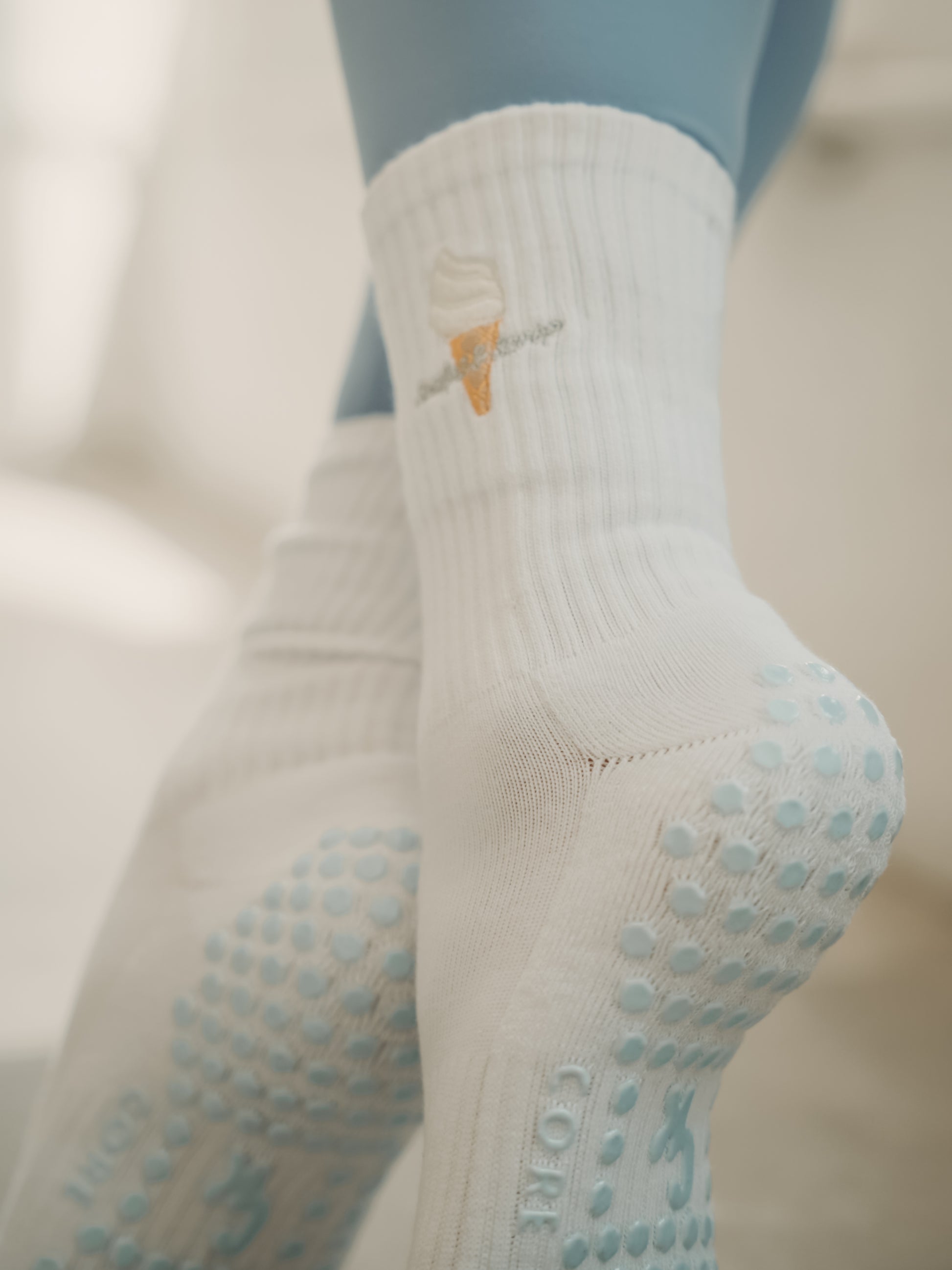 signature hex grips, and an ice cream cone embroidery that’s too cute to skip. Perfect for Pilates, yoga, or just lounging in luxe. ✨
